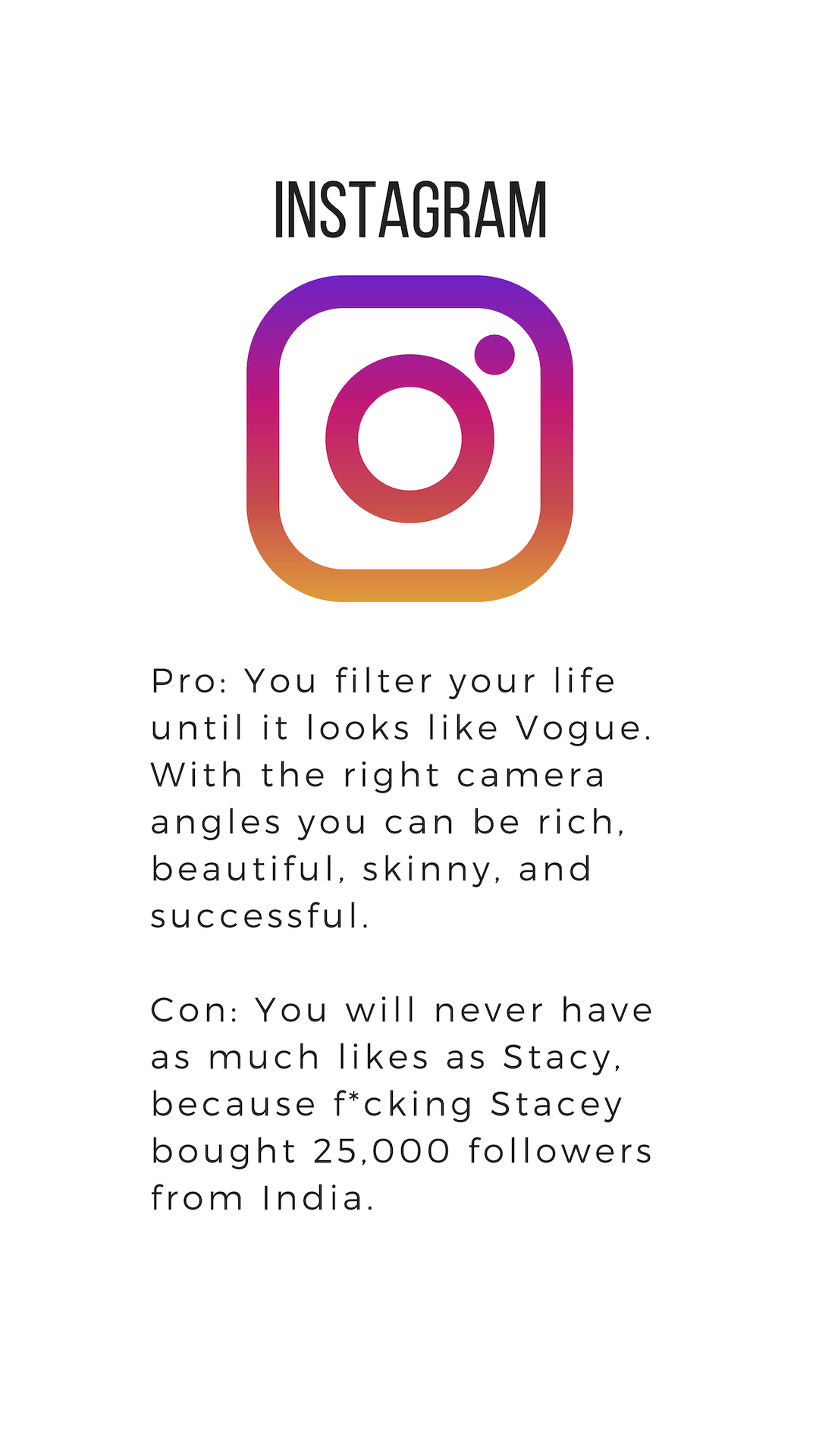 Con: You will never have as much likes as Stacy, because f*cking Stacey bought 25,000 followers from India.