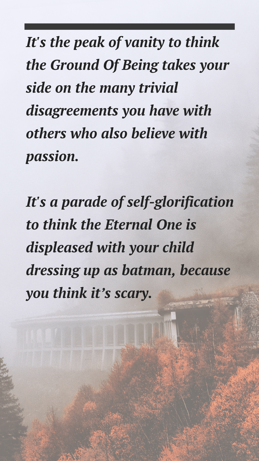 It’s the peak of vanity to think Ground Of Being takes your side on the many trivial disagreements you have with others who also believe with passion.