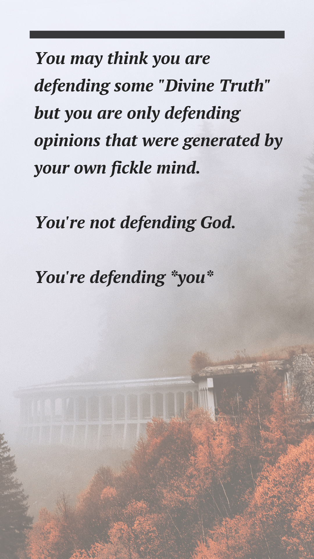 You may think you are defending some “Divine Truth” but you are only defending opinions that were generated by your own fickle mind.