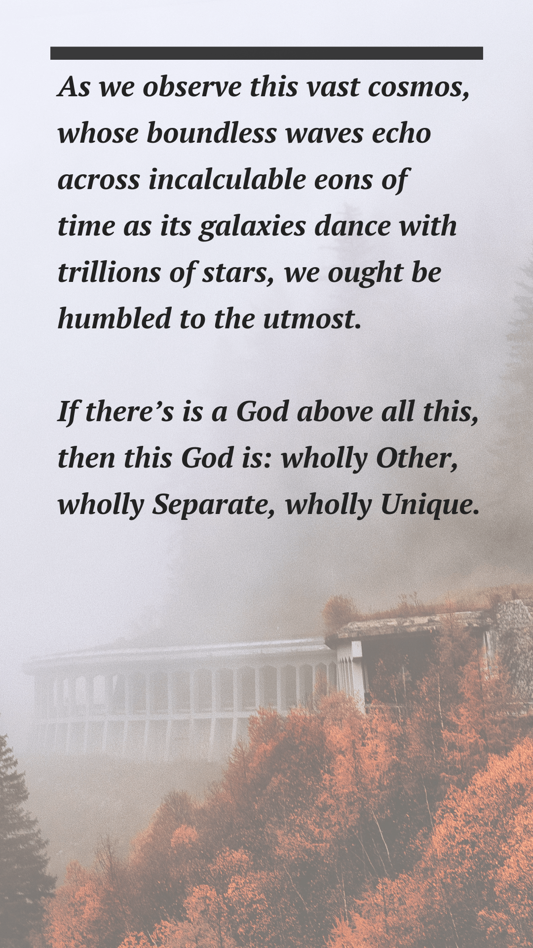 If there’s is a God above all this, then this God is wholly Other, wholly Separate, wholly Unique.