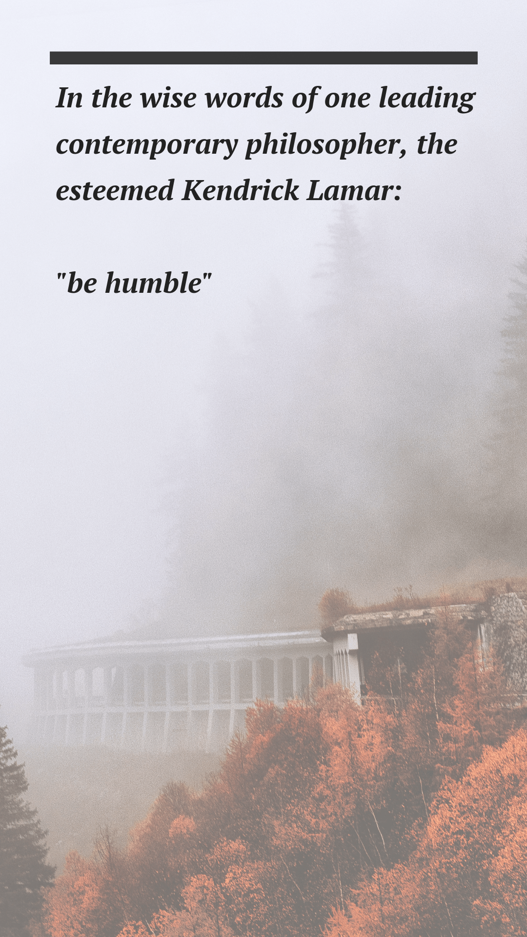 In the wise words of one leading contemporary philosopher, the esteemed Kendrick Lamar: “be humble”