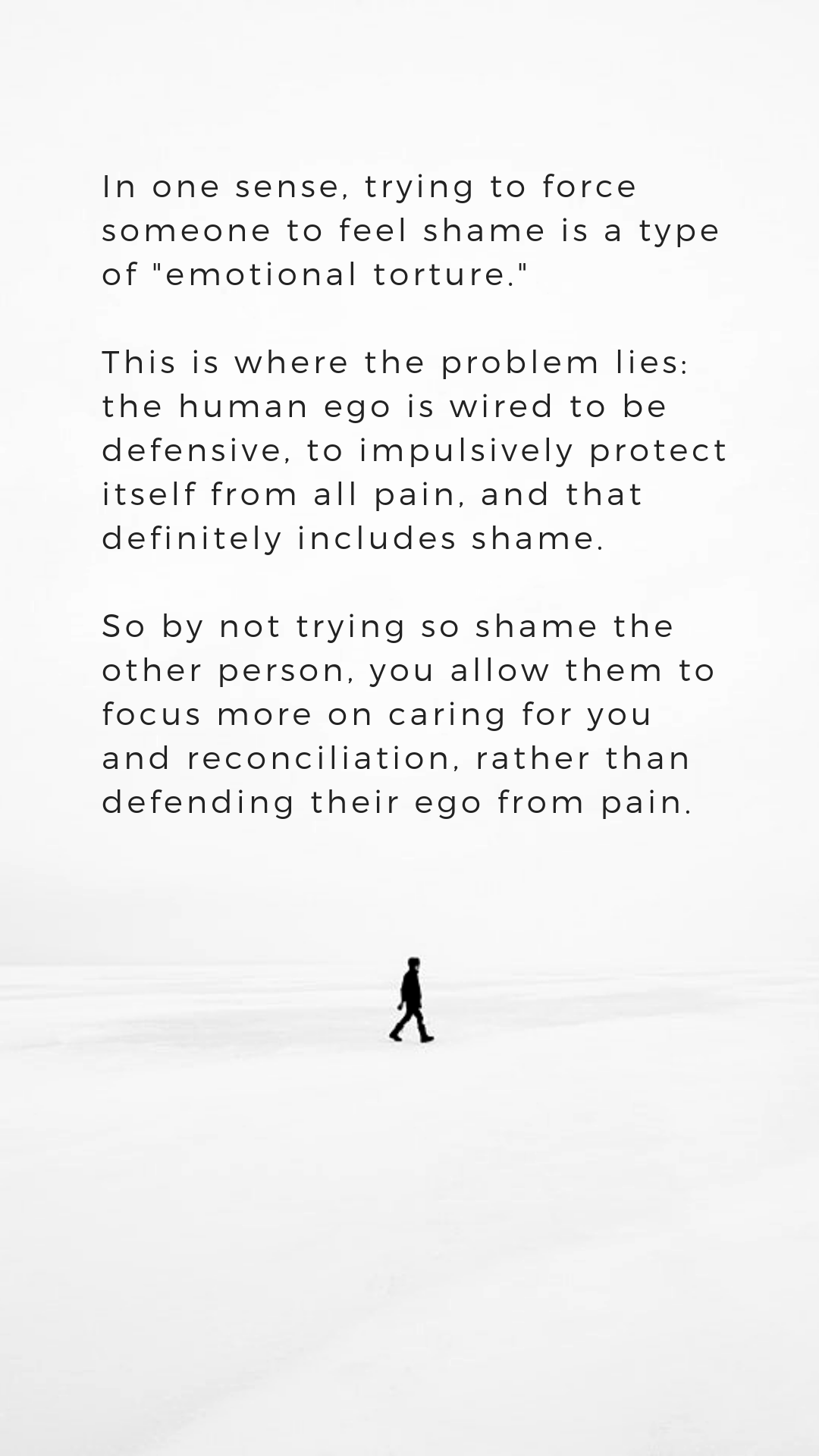 So by not trying so shame the other person, you allow them to focus more on caring for you and reconciliation, rather than defending their ego from pain.