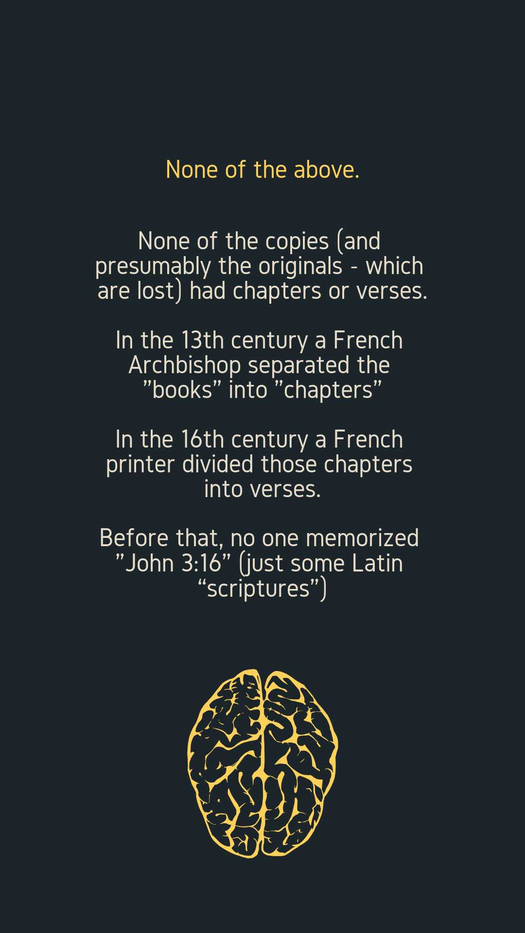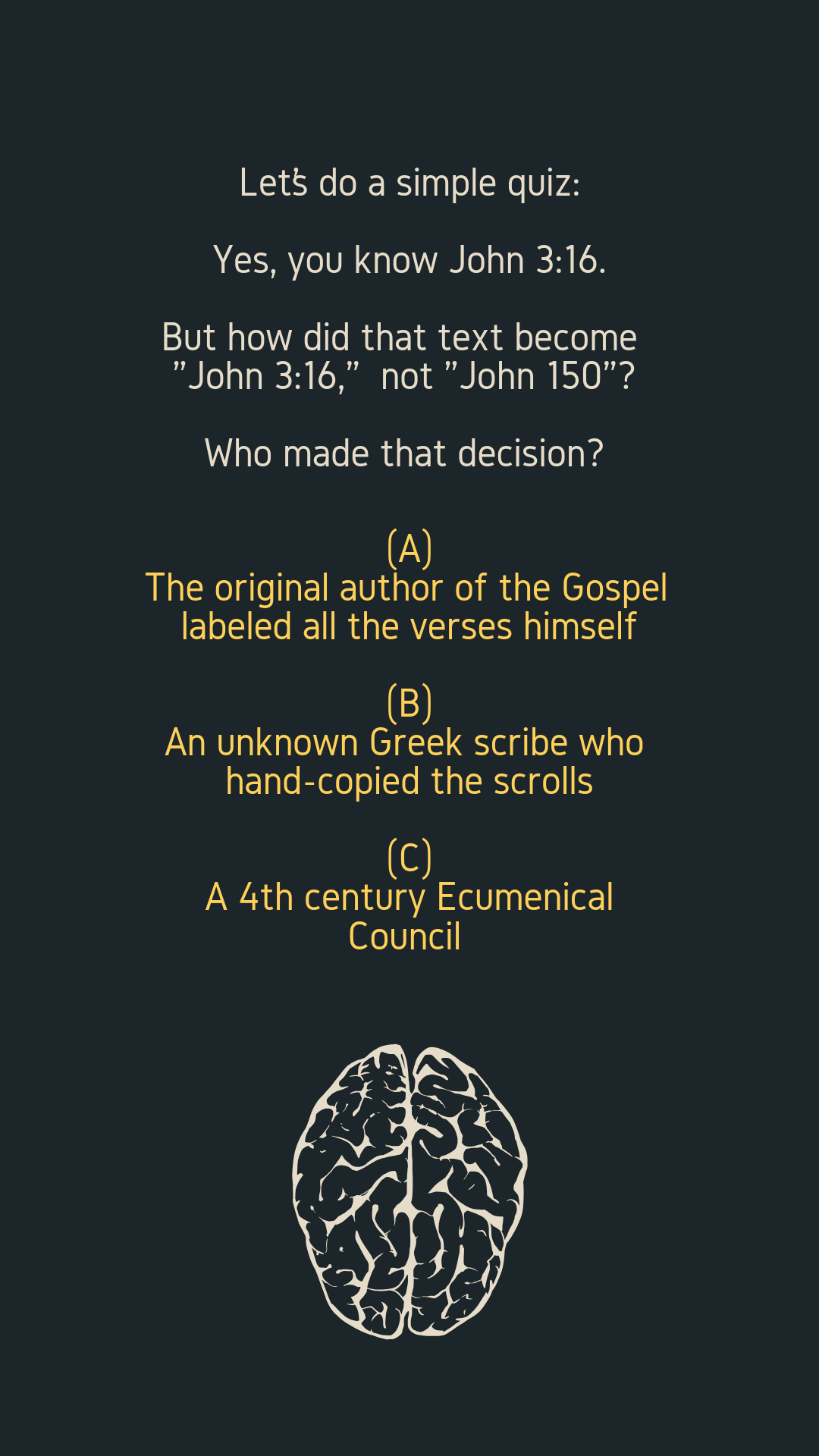 But how did that text become “John 3:16,” not “John 150”?