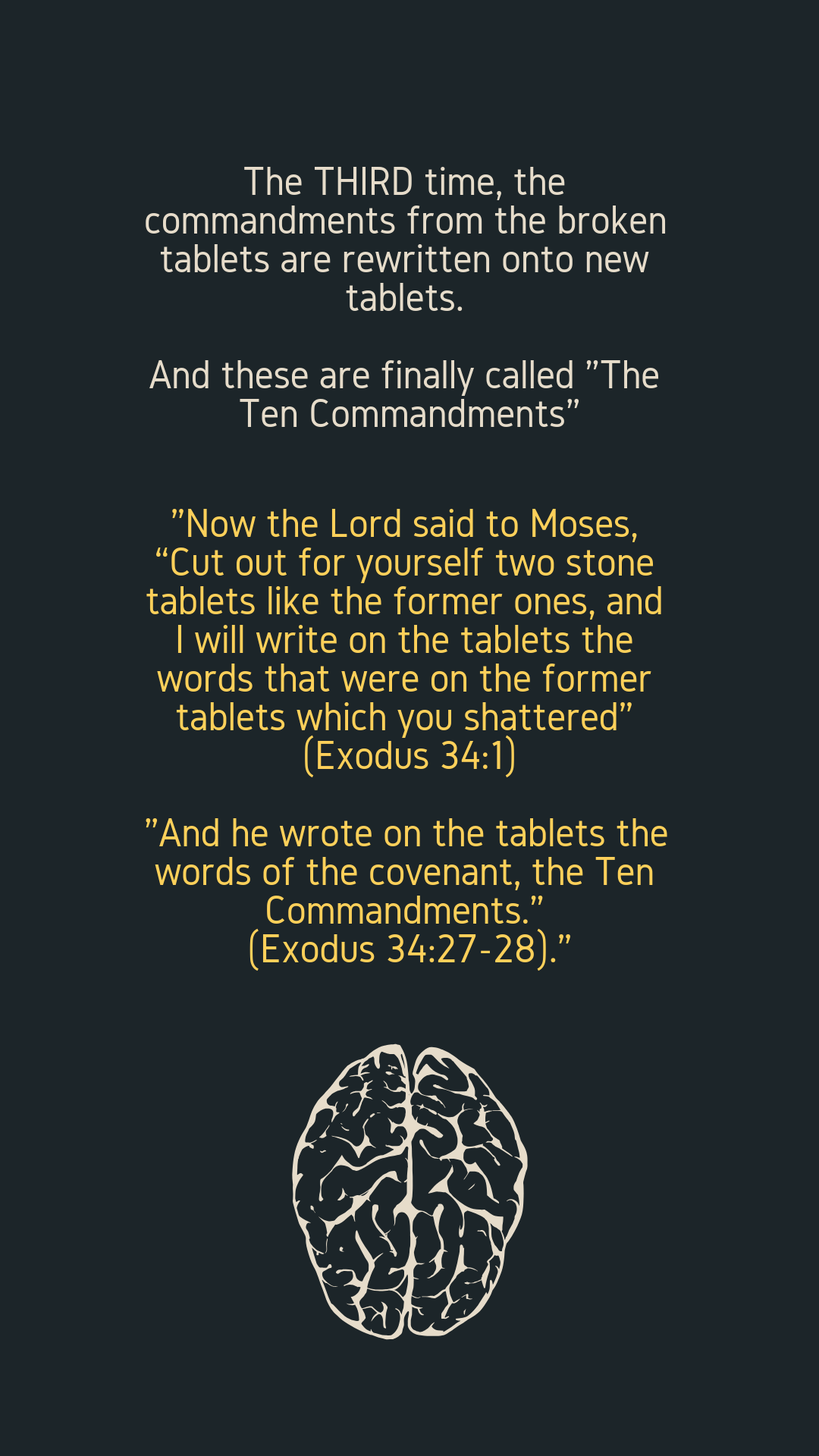 “And he wrote on the tablets the words of the covenant, the Ten Commandments.” (Exodus 34:27-28).”