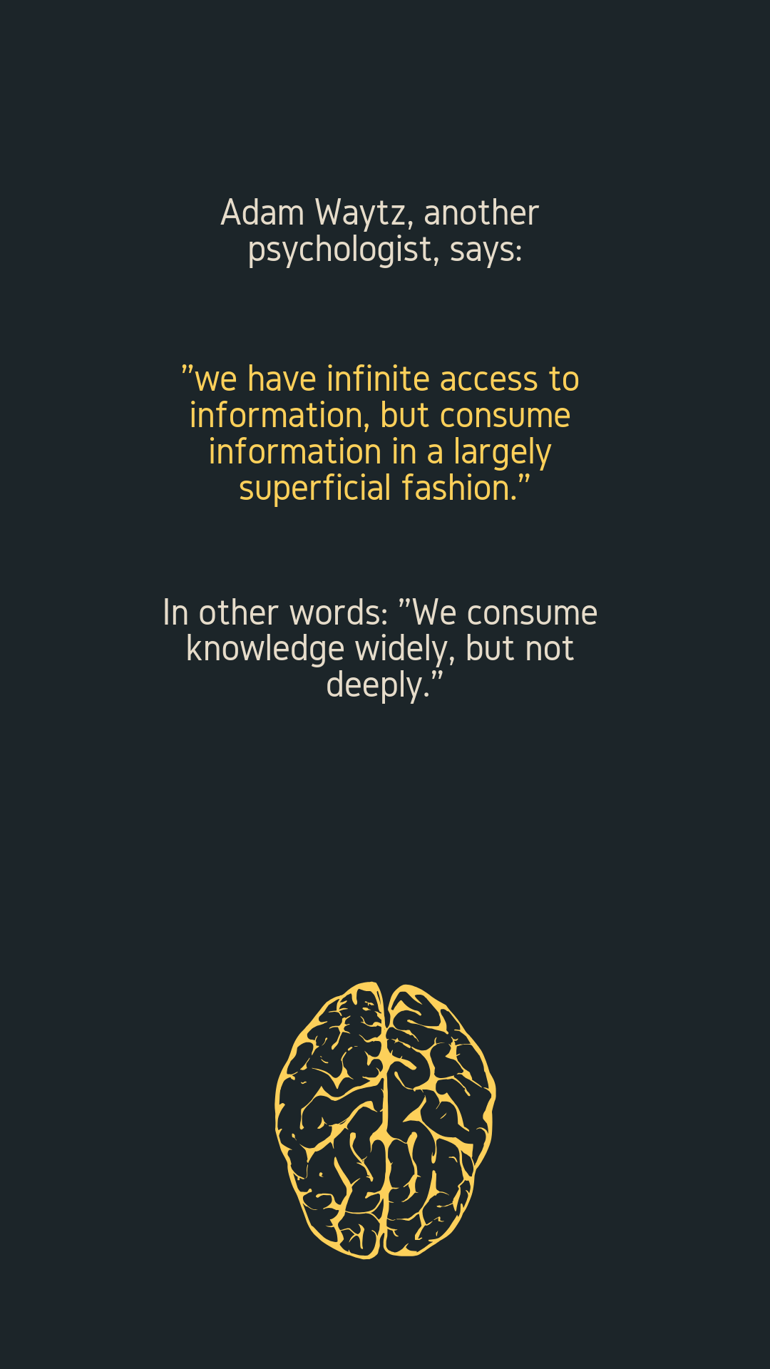In other words: “We consume knowledge widely, but not deeply.”