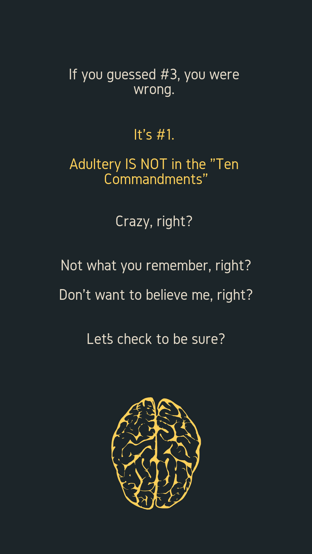 It’s #1. Adultery IS NOT in the “Ten Commandments”