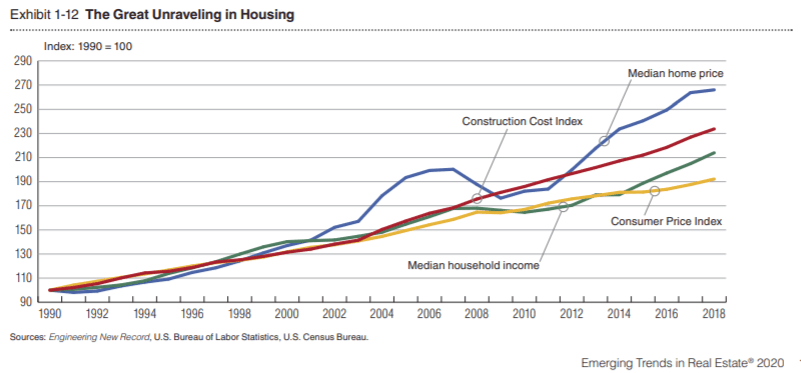 Median home prices have appreciated faster than income and the cost of goods and services.
