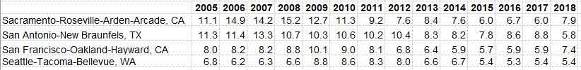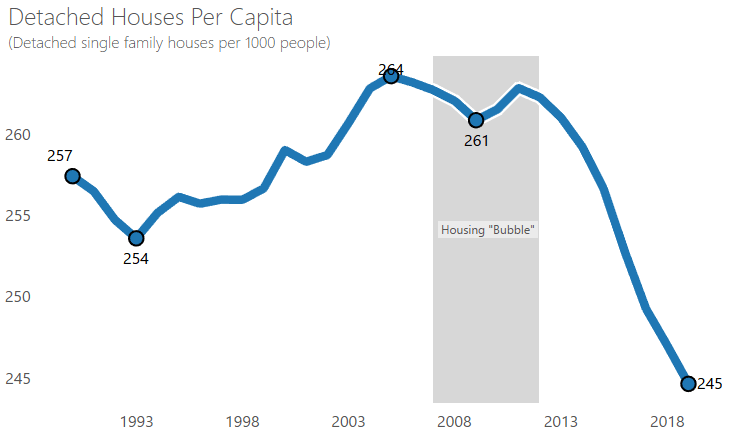 Though its possible some of the change is people are using their second homes as temporary rentals via Airbnb. This led me to my next question: many housing units are there per person?