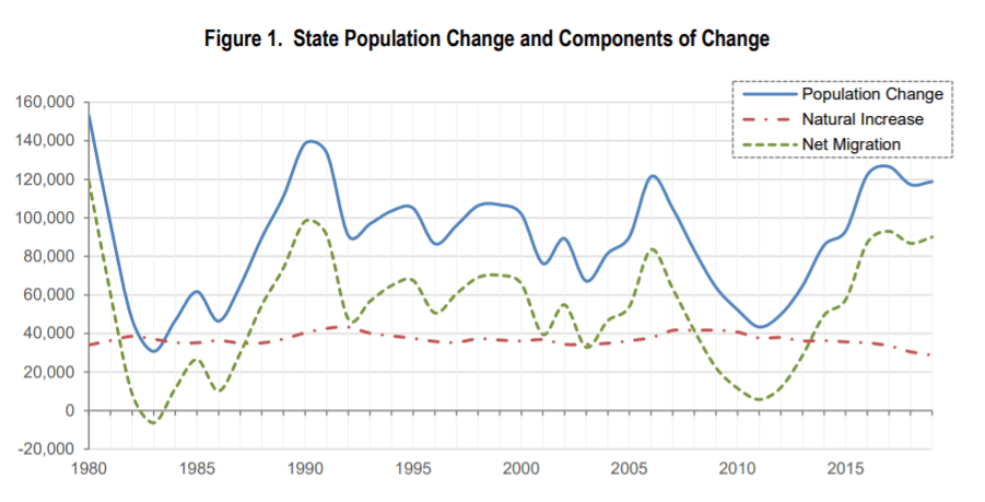 And yet, the overall population is growing due to migration from within and without the United States. Interestingly the highest population growth was the early 1990’s, when my family immigrated here because of the Immigration Act of 1990. It stands to reason future immigration laws will continue to affect this.